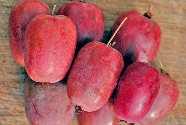Актинидия аргута Пурпурна Садова (Purpurna Sadowa) Один из самых известных сортов актинидии аргута. Изюминка сорта – это оригинальная пурпурная окраска плодов и их мякоти, давшая название плодовой культуре. Но цвет – не единственное достоинство актинидии аргута Пурпурна Садова. У плодов отменный сладко-кислый вкус, привлекательный аромат и сочная мякоть, скрытая под съедобной кожицей. Плодоношение начинается на третий год, сбор урожая проводят в первой декаде октября. При правильно выбранном месте для посадки и уходе актинидия аргута, как на фото, стабильно одаривает урожаем красивых плодов длиной до 4 см. Зимой растения не подмерзают при температуре до –25 °С.Характеристики
