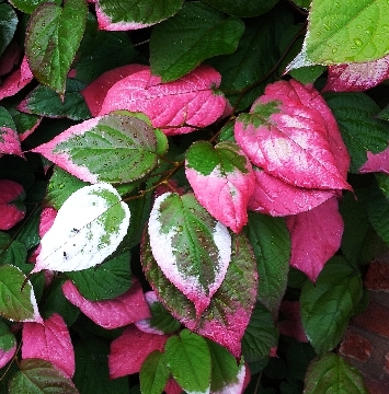 Актинидия коломикта Адам Actinidia kolomikta Adam Декоративная, плодоносящая лиана. Польский сорт. Опылитель. В мае листья становятся бело-зелёные, а в июне дополнительно окрашиваются в розовый. Окраска проявляется на 2-3 год после посадки. Лучше всего проявляется на солнце. Цветки мелкие, белые, с жёлтыми тычинками, с легким лимонным ароматом. Цветёт в мае. Растение очень морозостойкое.Характеристики