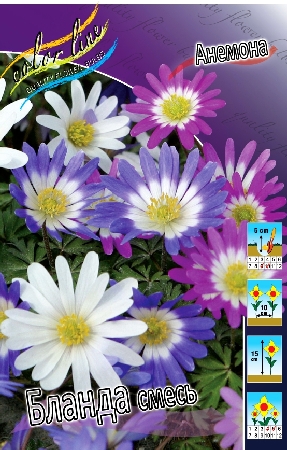 Лесная анемона сорта Бланда — растение с тонкими длинными лепестками, чьи крупные сине-фиолетовые цветки с жёлтыми тычинками придадут Вашему саду свежесть и очарование.
