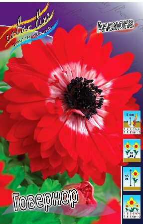 Анемона Говернор — удивительный по своей форме и окраске цветок напоминает алый закат, которым вы любуетесь на протяжении всего лета. Анемона The Governor рубиново-красного оттенка, у основания лепестков нежно-белая кайма с черными густыми тычинками. Листья рассеченные, пышные, высота куста 30-40 см, диаметр цветка до 7 см. Продолжительность цветения 15-20 дней. Анемона Говернор хорошо смотрится в разноцветных букетах, можно использовать для срезки и выгонки, для посадки на клумбах и для оформления альпийских горок.Анемоны неприхотливы, предпочитают расти на плодородной почве, на солнце или в полутени. За пару лет одно растение так разрастается, что занимает площадь не менее квадратного метра, это необходимо учитывать при посадке. На зиму корневища выкапывают, либо укрывают слоем 10-15 см. Для зимнего хранения клубни выкапывают после отмирания листьев и содержат в сухом субстрате: до зимы при температуре 15-20°С, а затем до весны – при 2-5°С. Эти условия ограничивают рост стеблей. Растения высаживают в ап