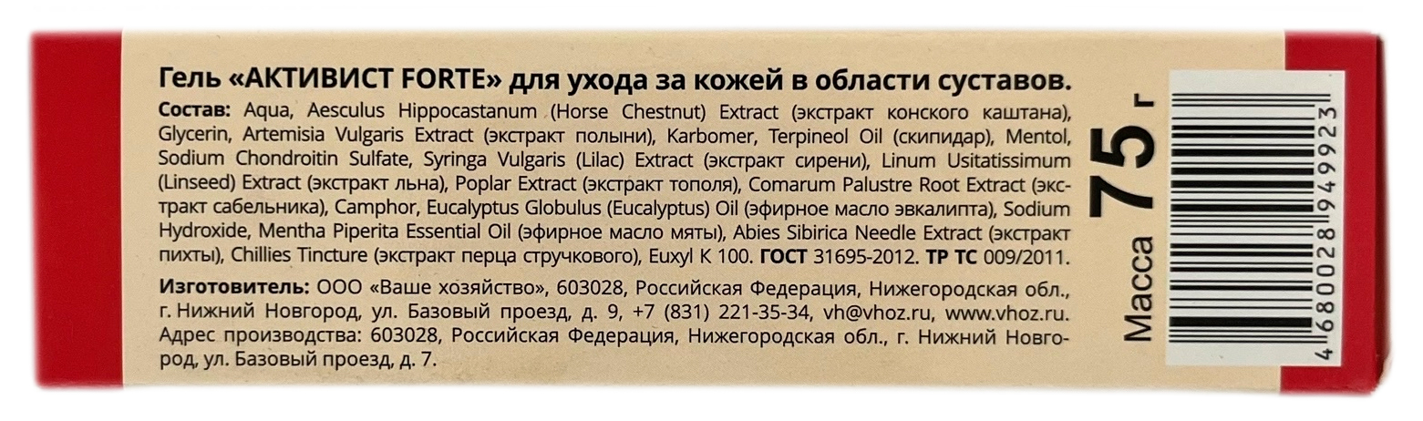 Активист FORTE, гель для ухода за кожей в области суставов- Первый шаг к здоровью суставов и мышц;