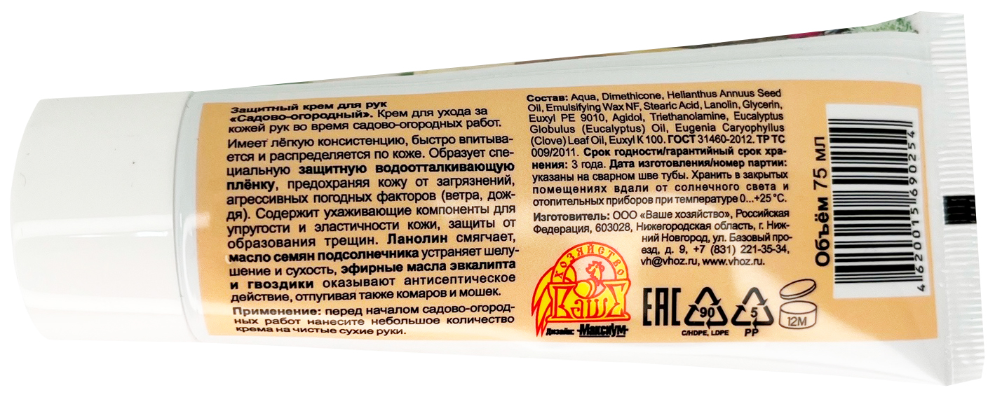 Защитный крем для рук Садово-огородный.Крем «Садово-огородный» с защитными свойствами. Перед работой с землей, водой или растениями просто тонким слоем наносится на кожу рук. Создаёт на коже барьерную пленку, которая предохранит клетки кожи от контакта с нежелательными веществами и сохранит на ее поверхности оптимальный «рН» и сохранит кожу рук такой же, как она была до начала работы. Кроме того, крем «Садово-огородный» содержит косметические субстанции, которые не только защищают кожу, но и оказывают на нее благотворное воздействие. Также в состав крема входят натуральные эфирные масла, отпугивающие мошек и комаров. Каждая хозяйка знает, как много мошек, комариков и комаров стремится атаковать руки, занятые работой с землей или растениями. Крем «Садово-огородный» успешно защищает от их нападения примерно на 30–50 минут. В этом его уникальное отличие от других защитных кремов.