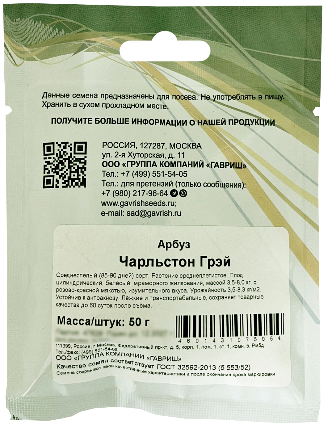 Арбуз Чарльстон Грей 50,0г (Citrullus lanatus (Thunb.) Matsum. & Nakai)Среднеспелый (85-90 дней) сорт. Растение среднеплетистое. Плод цилиндрический, белёсый, мраморного жилкования, массой 3,5-8,0 кг, с розово-красной мякотью, изумительного вкуса. Урожайность 3,5-8,3 кг/м2. Устойчив к антракнозу. Лёжкие и транспортабельные, сохраняет товарные качества до 60 суток после съёма.