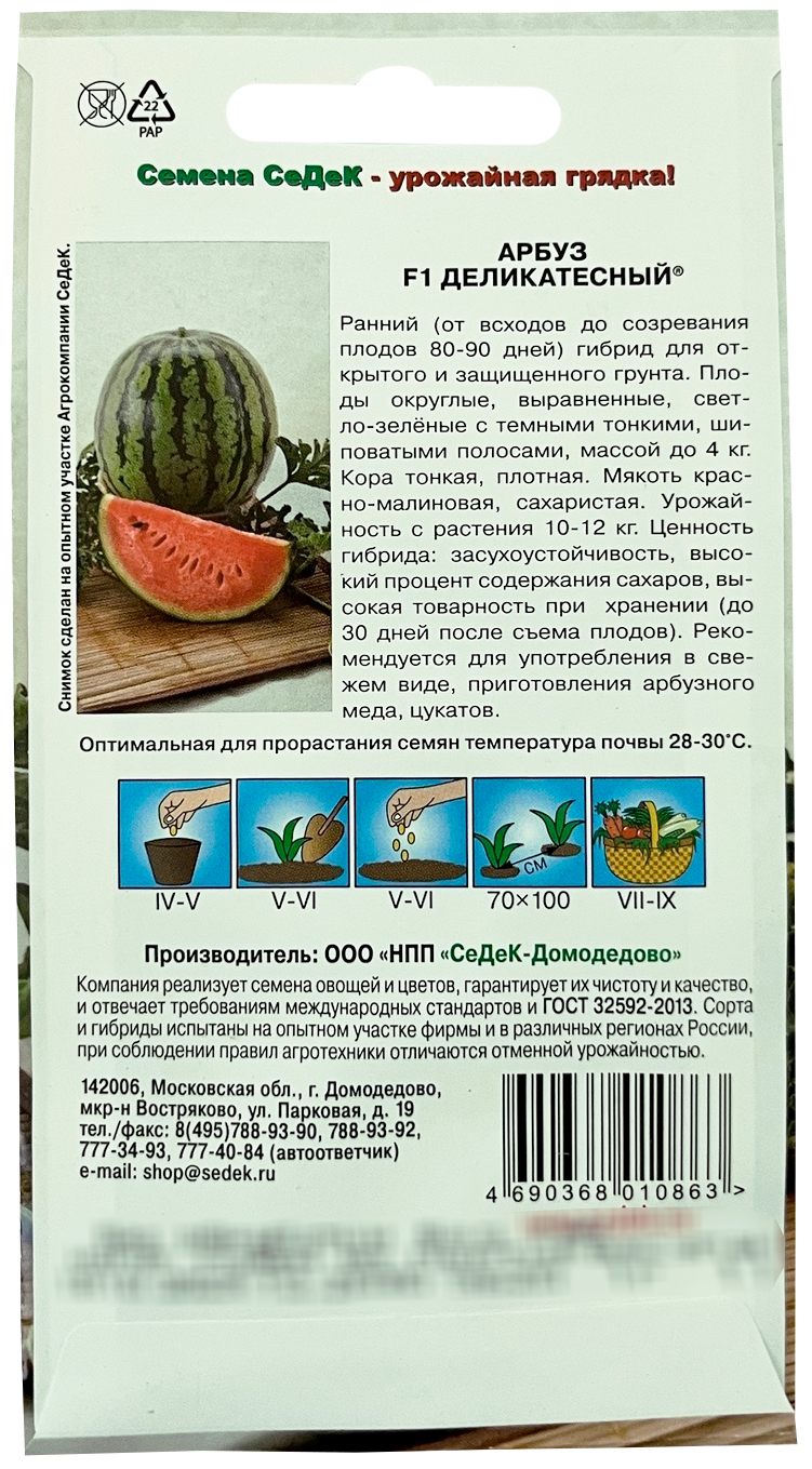 ---Арбуз Деликатесный F1 (Евро 1) семенаСеменаПосадочный материалГоршки, кашпо, ящики для рассадыУкрашения и дизайн дачного участкаГрунтУдобрения, стимуляторыЯдохимикаты (пестициды)От комаров тараканов муравьев мышей крыс кротовИнструмент, оборудование садовоеТовары для животныхКухня садоводаФлористические материалыЛитератураФитолампыВсе для праздника, нового годаПоливочное оборудованиеХозтоварыУпаковка