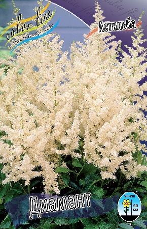 Диамант - растение до 70см высотой. Листья крупные, светло-зеленые, без блеска, края листочков бурые. Цветки белые, в широко-метельчатом соцветии средней плотности до 35см длиной и 14-20см в поперечнике. Зацветает в первых числах июля. Продолжительность цветения 25-30 дней. Рекомендуется для одиночных и групповых посадок, срезки.Характеристики