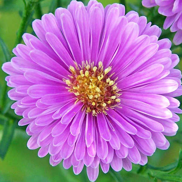 Цветы астры новобельгийской Patricia Ballard отличаются приятным светло-лиловым цветом лепестков, махровыми пышными соцветиями довольно больших размеров и легким цветочным ароматом. Это довольно крупное растение, в среднем вырастающее на высоту около 1 метра. Эта астра начинает цвести в начале осени, но имеет продолжительный срок цветения, а также ценится за обилие цветов – розовые астры плотно растут на кусте.Астра новобельгийская- корневищный многолетник, растущий в виде куста обратнопирамидальной формы. Стебли от 50 см до 150 см высотой, густоветвистые в верхней части, голые или волосистые, в зависимости от сорта. Кусты густооблиственные. Листья линейно-ланцетные с тупыми основаниями, очередные, сидячие. Соцветия крупные, метельчатые, состоящие иногда из 200 корзинок. Язычковые цветки многочисленные, чаще всего лиловые. Некоторые сорта имеют другую окраску, у некоторых язычковые цветки расположены в несколько рядов, полностью прикрывая желтые трубчатые цветки, что создает впечатление махровости. Этот в