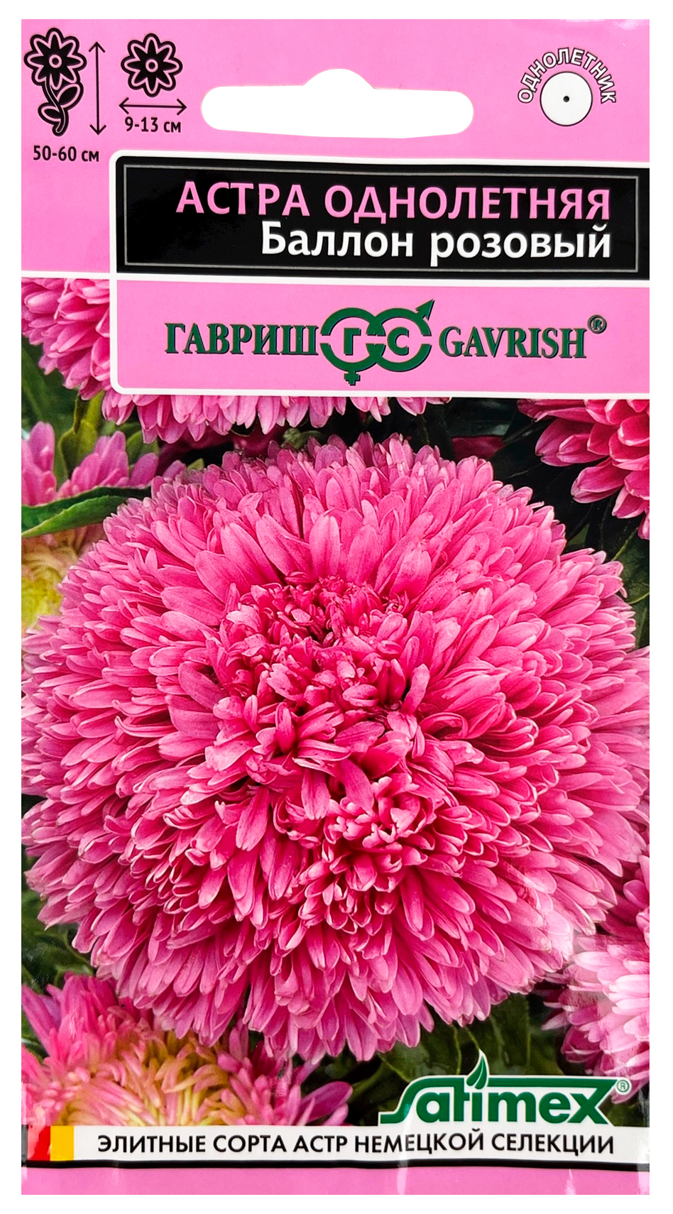 Астра Баллон розовый, однолетняя (густомахровая)* 0,05 г серия ЭксклюзивЛегендарная серия астр Balloon (Воздушный шар) превосходит все известные сорта по степени махровости и плотности шаровидных соцветий. Растение пирамидальной формы, высотой 50-60 см с прочными цветоносами и крупными пушистыми пурпурно-розовыми цветками диаметром 9-13 см преобразят невзрачные пустующие места в саду, добавят ярких красок и будут радовать сочными насыщенными оттенками и воздушно-легким аромат на протяжении длительного периода цветения. На одном растении формируется до 6-8 соцветий. Выращивают чаще всего рассадным способом. Семена высевают в марте-апреле, пикируют с развитием первой пары настоящих листочков по схеме 5х5 см, в открытый грунт рассаду высаживают с середины мая до начала июня. Возможен посев семян в открытый грунт ранней весной или под зиму с последующим мульчированием торфом или опилками. Отличаются великолепными срезочными свойствами, до двух недель стоят в воде, сохраняя декоративность. Эффектный внешний вид и некапризный характер делают серию Баллон бесспорным фаворитом на участке.