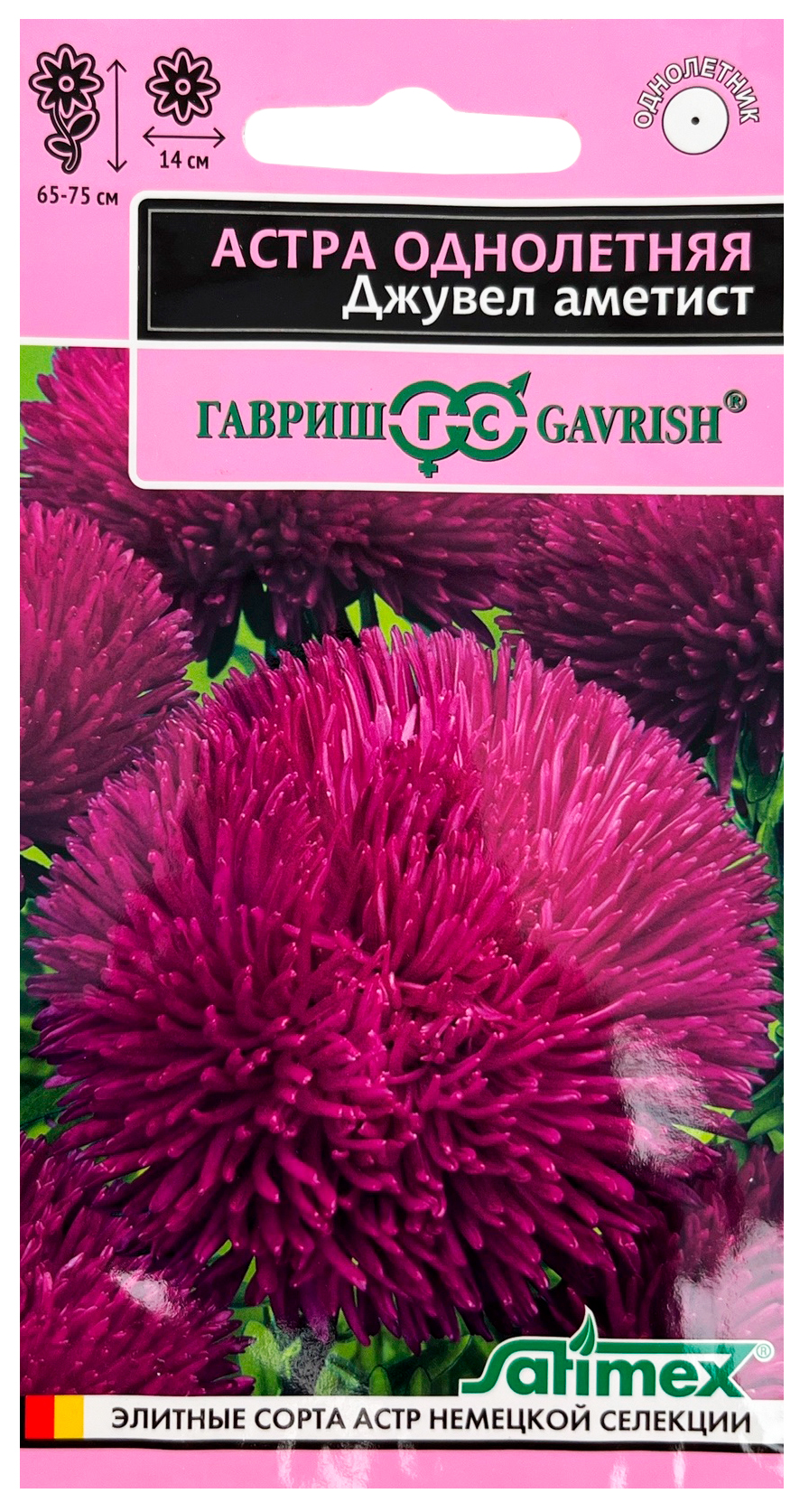 Астра Джувел Аметист, однолетняя (игольчато-коготковая)* 0,05 г серия ЭксклюзивАстра аметист «Джувел» — цветущий однолетник с очень крупными игольчато-коготковыми соцветиями в форме шара. Яркие цветы фиолетово-красного оттенка достигают диаметром до 14 см. Куст конусовидный, вырастает до 65-75 см, дает до 10 соцветий.