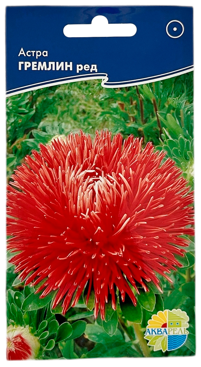 Астра ГРЕМЛИН ред АКВАРЕЛЬЭффектная астра с роскошным цветением. Кусты высокорослые – 70-75 см высотой, стройные, узкие, букетной формы. На кусте раскрыты одновременно 10-15 густомахровых, крупных соцветий 10-12 см. Цветоносы длиной 35-45 см. Растения устойчивы к фузариозу, сохраняют декоративность в дождливую погоду. Используются для оформления цветников и на срезку.