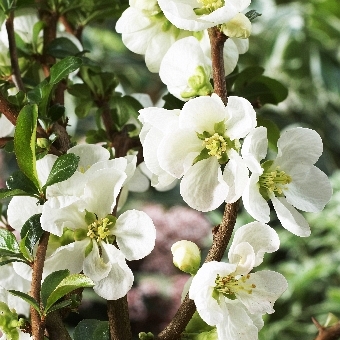Айва великолепная (хеномелес) Джет Трэйл Chaenomeles x superba Jet Trail Широкий кустарник, без колючек, побеги частично стелются. Цветки белые, цветут в апреле-мае. Плоды до 5см в диаметре. МедоносХарактеристики