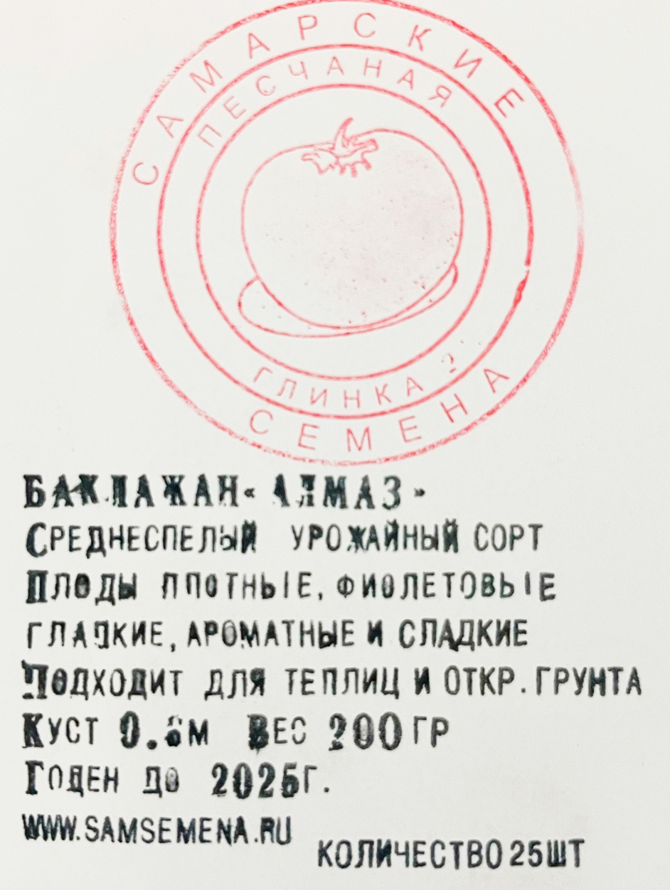 Баклажан АлмазСреднеспелый урожайный сорт.