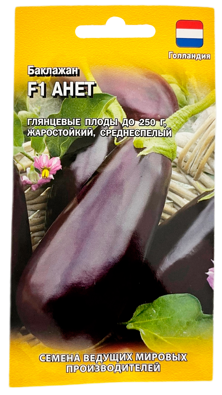 Баклажан АНЕТ ГАВРИШСреднеспелый (60-70 дней после высадки рассады) гибрид. Растение сомкнутое, средней высоты. Стебель с антоциановой окраской средней интенсивности, опушение сильное. Плод цилиндрический, темно-фиолетовый, сильноглянцевый. Шипы на чашечке редкие. Мякоть беловатая, без горечи, отличного вкуса. Масса плода 180-250 г. Урожайность 3,5-4,0 кг/м2. Отлично подходит для использования в домашней кулинарии, консервирования и переработки. Рекомендуется для выращивания на шпалерах в теплицах, парниках и открытом грунте. Выращивают рассадным способом.