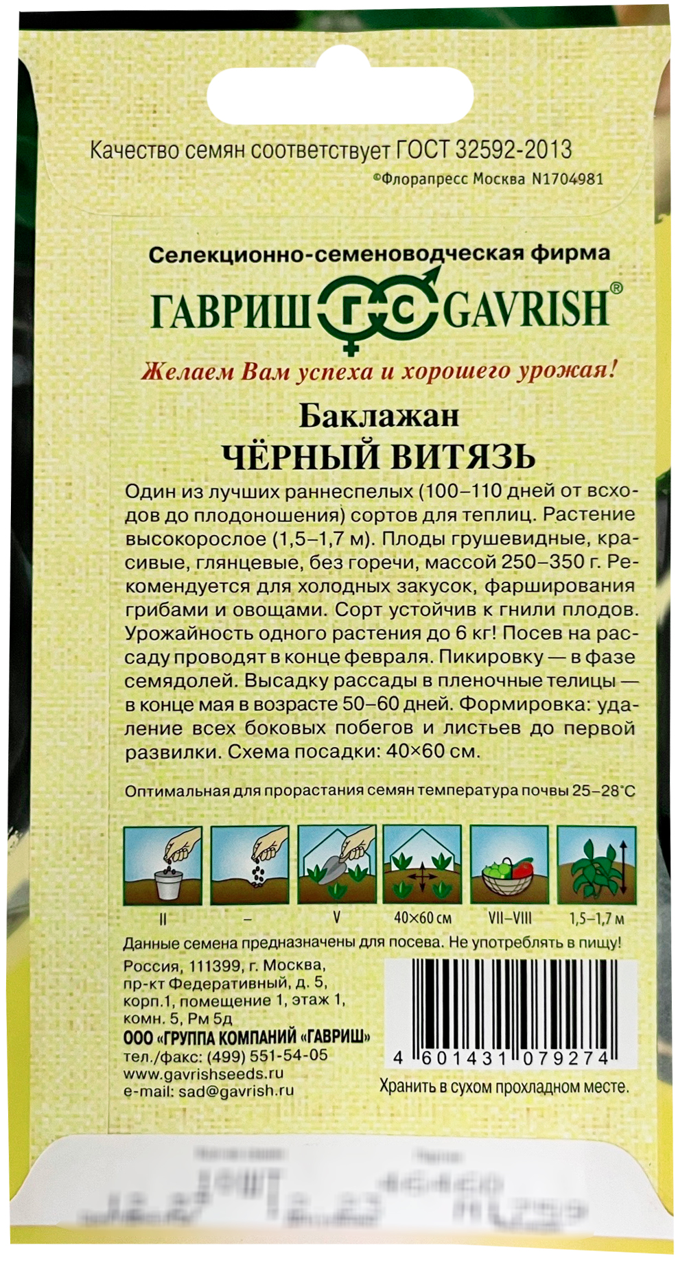 ---Баклажан Черный витязь F1 10шт суперранний! автор. семенаСеменаПосадочный материалГоршки, кашпо, ящики для рассадыУкрашения и дизайн дачного участкаГрунтУдобрения, стимуляторыЯдохимикаты (пестициды)От комаров тараканов муравьев мышей крыс кротовИнструмент, оборудование садовоеТовары для животныхКухня садоводаФлористические материалыЛитератураФитолампыПоливочное оборудование