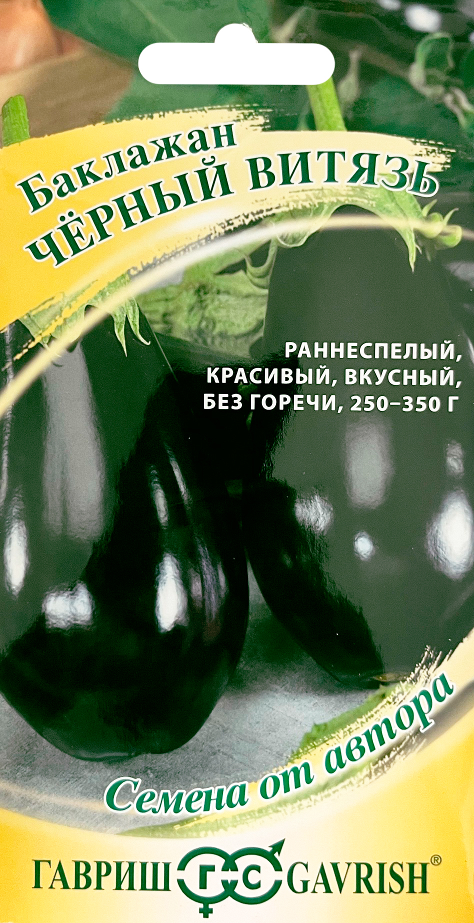 Баклажан Черный витязь F1 10 шт. суперранний! автор. (Solanum melongena L.)Среднеспелый (100-110 дней от всходов до плодоношения) гибрид для пленочных и остекленных теплиц. Растение высокорослое, от 1,0 до 1,7 м, в зависимости от условий. Плоды грушевидные, красивые, глянцевые, без горечи, массой 250-350 г. Рекомендуется для холодных закусок, фарширования грибами и овощами. Гибрид устойчив к гнили плодов. Урожайность одного растения до 6 кг! Посев на рассаду производят в конце февраля. Пикировку — в фазе семядолей. Высадку рассады в пленочные телицы — в конце мая в возрасте 50-60 дней. Формировка: удаление всех боковых побегов и листьев до первой развилки. Схема посадки: 40х60 см.