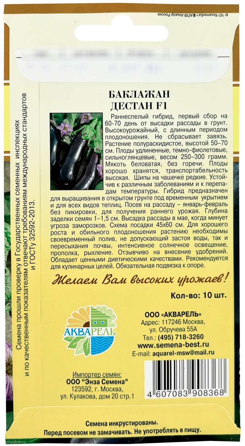 ---Баклажан Дестан F1 10шт семенаСеменаПосадочный материалГоршки, кашпо, ящики для рассадыУкрашения и дизайн дачного участкаГрунтУдобрения, стимуляторыЯдохимикаты (пестициды)От комаров тараканов муравьев мышей крыс кротовИнструмент, оборудование садовоеТовары для животныхКухня садоводаФлористические материалыЛитератураФитолампыПоливочное оборудование