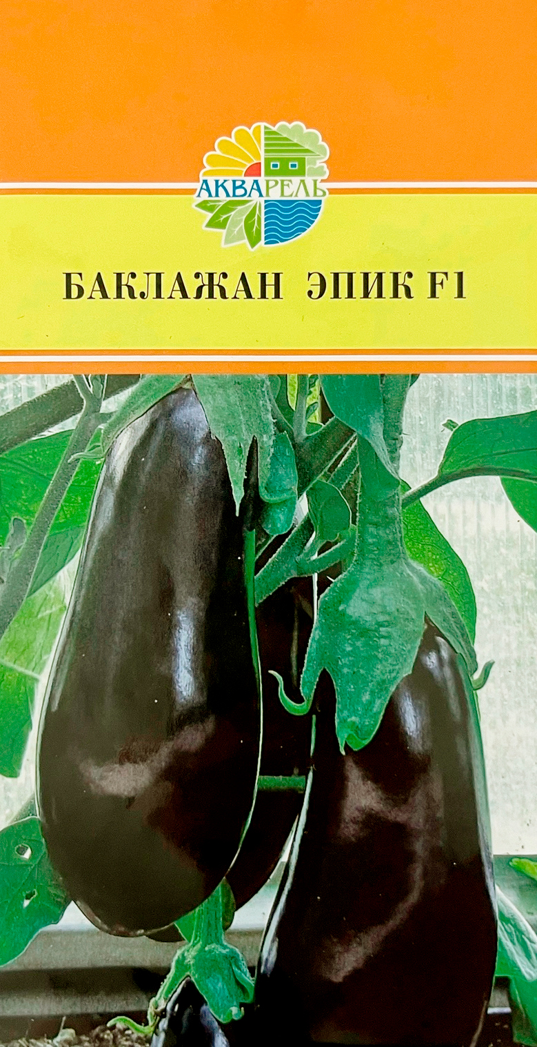 Баклажан Эпик F1 АКВАРЕЛЬВысокоурожайный гибрид с каплевидными плодами. К большим достоинствам можно отнести раннее созревание, высокую урожайность в купе с великолепным качеством плодов и устойчивостью к болезням. Все эти показатели делают Эпик «коммерческим победителем» в среде овощеводов. Созревание в среднем через 64 дня после пересадки. Растение высотой 90-100 см, с прямостоячим габитусом и прекрасной силой роста. Подходит для выращивания в различных климатических условиях. Плоды размером 10х21 см, очень однородные, привлекательного глубокого пурпурно-черного цвета. Мякоть белая, высокого качества. Устойчивость: ToMV - вирус табачной мозаики Рекомендуется для выращивания на шпалерах и тросах в теплицах, парниках и открытом грунте. Для потребления в свежем виде и переработки.