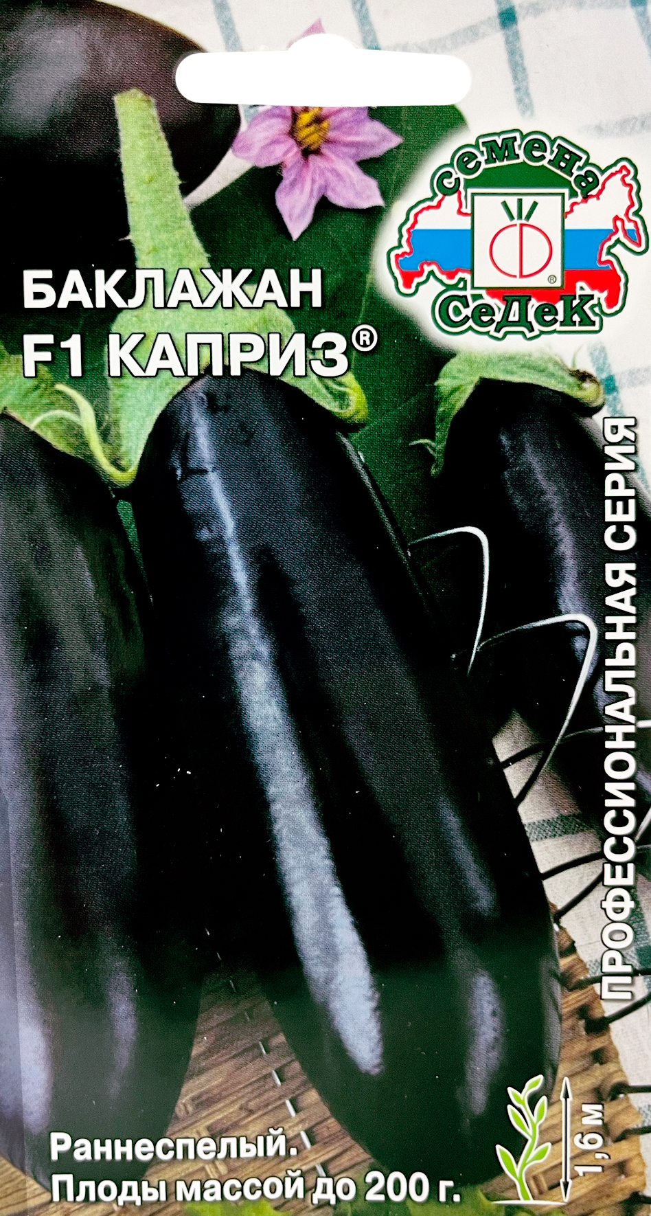 Баклажан Каприз F1Раннеспелый (95-105 дней) гибрид для выращивания в открытом и защищённом грунте. Растение штамбовое, высокорослое, сомкнутое, высотой 1,6 м, обильно плодоносящее. Плоды цилиндрические, выровненные, тёмно-фиолетовые, массой 180-200 г, с белой мякотью, без горечи. Урожайность под пленочными укрытиями 6-7 кг/кв.м. Ценность гибрида: отличается высокой завязываемостью плодов при неблагоприятных погодных условиях, обильная урожайность, высокая товарность, пригодность к транспортировке. Рекомендуется для использования в домашней кулинарии, консервирования, маринования и переработки на икру.