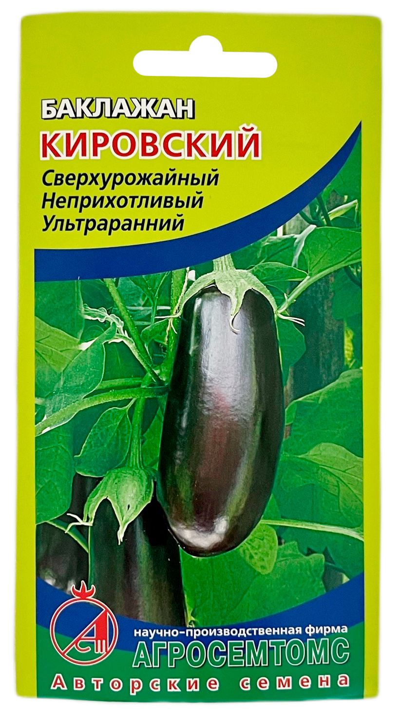Баклажан Кировский АГРОСЕМТОМСБаклажан Кировский – это именно тот баклажан, богатый урожай которого можно получите, даже тем, кто ни разу не выращивал эту культуру. Причём, урожай очень вкусный и очень полезный. Ведь, баклажан на Востоке вполне заслуженно называют «овощ долголетия».