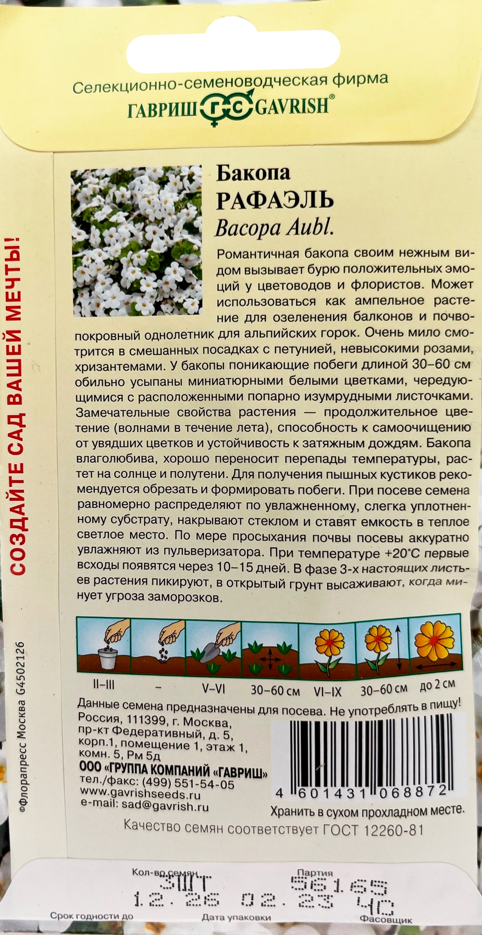 Бакопа Рафаэль (Сутера) 3 шт. гранул. пробирка семена