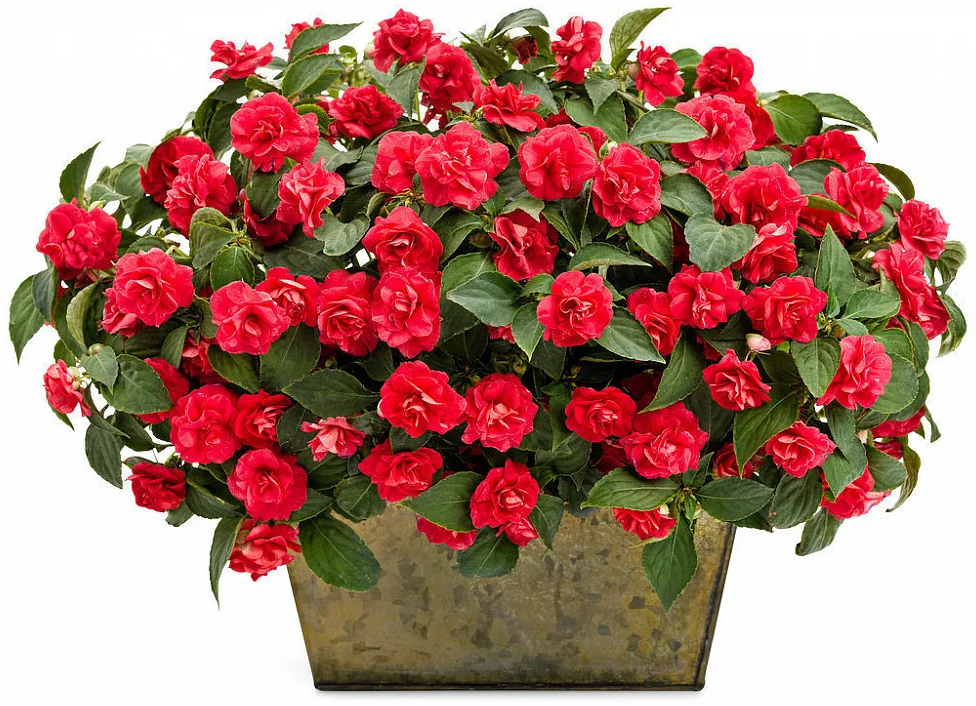 Роскошная форма бальзамина (импатиенса) для подвесных корзин и вазонов - образует цветущий шар.Многочисленные полумахровые цветки никого не оставят равнодушными. Растение сильно ветвится, формирует побеги длиной 30-35 см