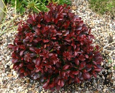 Невысокий, колючий кустарник с округлой, приплюснутой кроной. Вырастает до высоты 50-60 см. и шириной до 1 метра. Побеги короткие, густые, колючие. Листья мелкие, темно-пурпурного цвета. Осенью листья становятся ярко-красного цвета. Цветение не обильное, мелкими желтыми цветками. Плоды продолговатые, красного цвета, мелкие, долго остаются на кустах после опадения листвы. В питомнике Внуково наблюдается с 2006 года. и особых проблем, в выращивании и уходе не замечено.Характеристики
