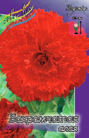Бегония — одно из самых популярных декоративно-цветущих и декоративно-лиственных растений. Бегонии цветут обильно и ярко, их роскошные цветки напоминают розы, гвоздики, камелии, пионы... Многочисленные нарядные цветки бегоний украшают сады с июня до сентября, а квартиры и защищённые от заморозков балконы ещё дольше - с конца весны до поздней осени. Бегония Бахромчатая Алая -Куст компактный, высотой 18—20 см. Листья светло-зеленые. Цветок махровый, алый с белыми штрихами, 12 см в диаметре.