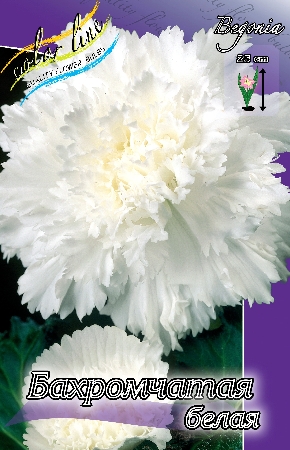 Бегония — одно из самых популярных декоративно-цветущих и декоративно-лиственных растений.Бегонии цветут обильно и ярко, их роскошные цветки напоминают розы, гвоздики, камелии, пионы... Многочисленные нарядные цветки бегоний украшают сады с июня до сентября, а квартиры и защищённыеот заморозков балконы ещё дольше - с конца весны до поздней осени.Куст компактный, высотой 18—20 см. Листья светло-зеленые. Цветок махровый, белый, 12 см в диаметре.Характеристики