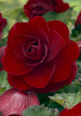 Бегония — одно из самых популярных декоративно-цветущих и декоративно-лиственных растений. Бегонии цветут обильно и ярко, их роскошные цветки напоминают розы, гвоздики, камелии, пионы. Многочисленные нарядные цветки бегоний украшают сады с июня до сентября, а квартиры и защищённые от заморозков балконы ещё дольше - с конца весны до поздней осени. Махровая темно - красная -высота 25-35 см. Цветки махровые, красные похожи на розы, до 11 см в диаметре. При посадке в марте на рассаду цветёт с конца