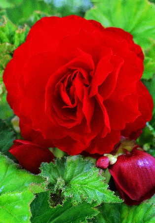 Бегония — одно из самых популярных декоративно-цветущих и декоративно-лиственных растений. Бегонии цветут обильно и ярко, их роскошные цветки напоминают розы, гвоздики, камелии, пионы. Многочисленные нарядные цветки бегоний украшают сады с июня до сентября, а квартиры и защищённые от заморозков балконы ещё дольше - с конца весны до поздней осени. Махровая ярко-краснаявысота 25-35 см. Цветки махровые, красные похожи на розы, до 11 см в диаметре. При посадке в марте на рассаду цветёт с конца