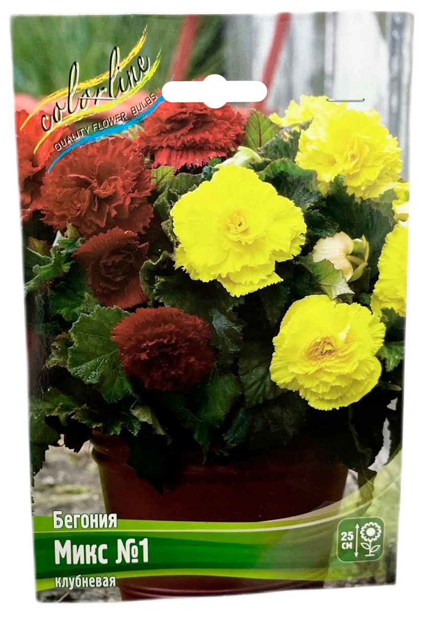 Бегония Микс №1 клубневаяСостоит из смеси бахромчатых бегоний высотой 25 см. В состав входят: Фимбриата желтая и красная. Кусты компактные, сильноветвящиеся. Соцветия крупные, махровые, с лёгким ароматом, диаметром 13-15 см. Цветение обильное и продолжительное с июня по октябрь.