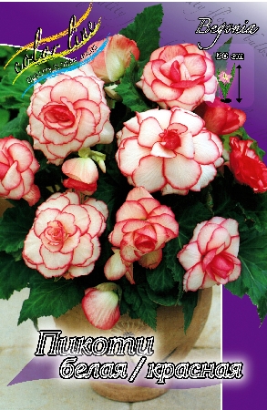 Бегония — одно из самых популярных декоративно-цветущих и декоративно-лиственных растений. Бегонии цветут обильно и ярко, их роскошные цветки напоминают розы, гвоздики, камелии, пионы. Многочисленные нарядные цветки бегоний украшают сады с июня до сентября, а квартиры и защищённые от заморозков балконы ещё дольше - с конца весны до поздней осени. БЕГОНИИ ПИКИТИ - окаймленные крупноцветковые махровые бгонии с каймой по краю лепестков, как правило, с обех сторон. Они бывают белые, желтые и светло-розовые, все с узкой розовой или красной каймой.Бегония Пикоти Белая/Красная -