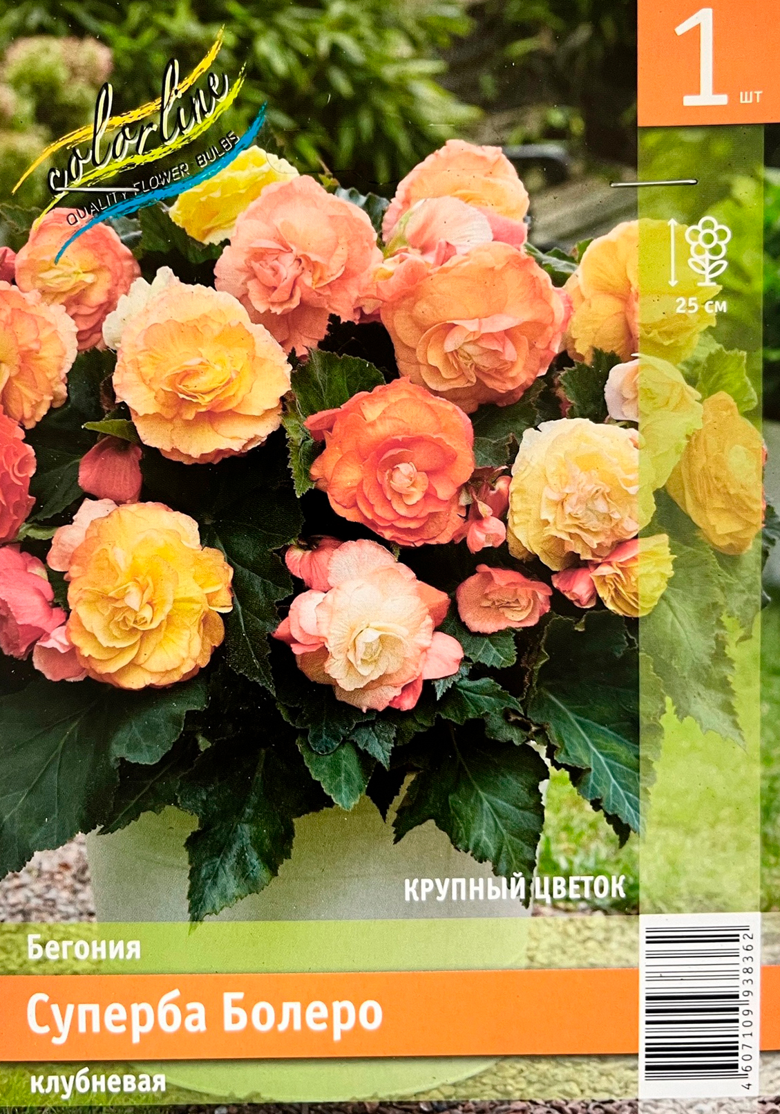 Бегония Суперба БолероОна принадлежит серии Суперба (Superba) и образует очень мощные кусты высотой до 30 сантиметров с крупными цветками диаметром 20 см. У Болеро края лепестков немного волнистые, махровость очень высокая и по мере роспуска цветка серединка не оголяется. Цвет- абрикосово-розово-кремовый с очень плавным перетеканием оттенков. При контейнерной посадке для большего эффекта в одну емкость лучше высаживать несколько клубеньков близко друг к другу.