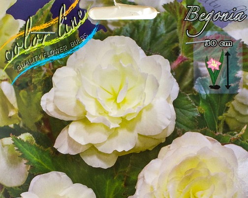 Бегония Вумми Крем. Многолетний травянистый гибрид высотой 25 см. Куст компактный, листья зеленые. Соцветие крупное, густомахровое, ароматное, диаметром 10-15 см. Цветок кремово-белый. Цветет в июне-октябре. Место расположения: солнце, полутень. Рекомендуется легкая плодородная почва со слабокислой реакцией. Высаживать клубни бегонии в открытый грунт рекомендуется в конце мая на глубину 3-5 см с расстоянием между растениями 15-20 см. Необходим обильный полив в период вегетации и умеренный в период цветения. Используется на клумбах, рабатках, в групповых посадках, для озеленения балкона или помещения как горшечная культура.Клубни бегонии рекомендуется выкапывать и хранить во влажном песке или торфе. Предпочитает тепло и влагу, но не терпит переувлажнения. Размножается делением клубней, черенками и семенами.Характеристики