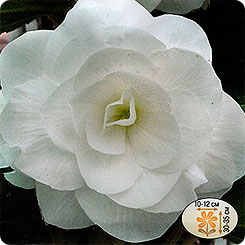 Многолетнее травянистое растение, в культуре открытого грунта выращивается как однолетнее. Растение кустовое компактное, высотой 30-35 см, с толстыми стеблями и красивыми зелеными листьями. Цветки махровые, камелиецветные, белые, 10-12 см в диаметре. Цветение обильное и продолжительное до заморозков. В период вегетации образуются клубни, которые можно использовать для дальнейшей посадки на следующий сезон. Клубневые бегонии хорошо развиваются при умеренной температуре и слегка повышенной влажности воздуха, лучшее место для посадки - полутень, но при обильном и регулярном поливе подходят и открытые солнечные места. Во время цветения необходимы дополнительные подкормки. Выращивая бегонию из семян, не заделывайте их глубоко, так как они очень мелкие. Всходы держите под стеклом, увлажняя теплой (30° С) водой. Используется для выращивания на клумбах, в рабатках, как горшечное растение, для озеленения балконов. Высаживается в кашпо, подвесные корзины, контейнеры.Характеристики