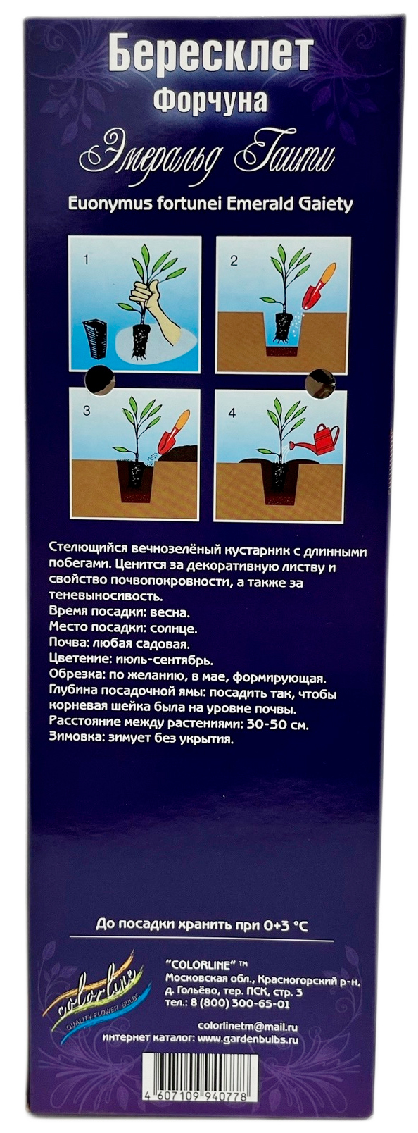 Бересклет Форчуна Эмеральд ГаитиЦепляется за опору. Очень декоративная листва. Высота растения 30 см. Морозостойкость - 34 С.