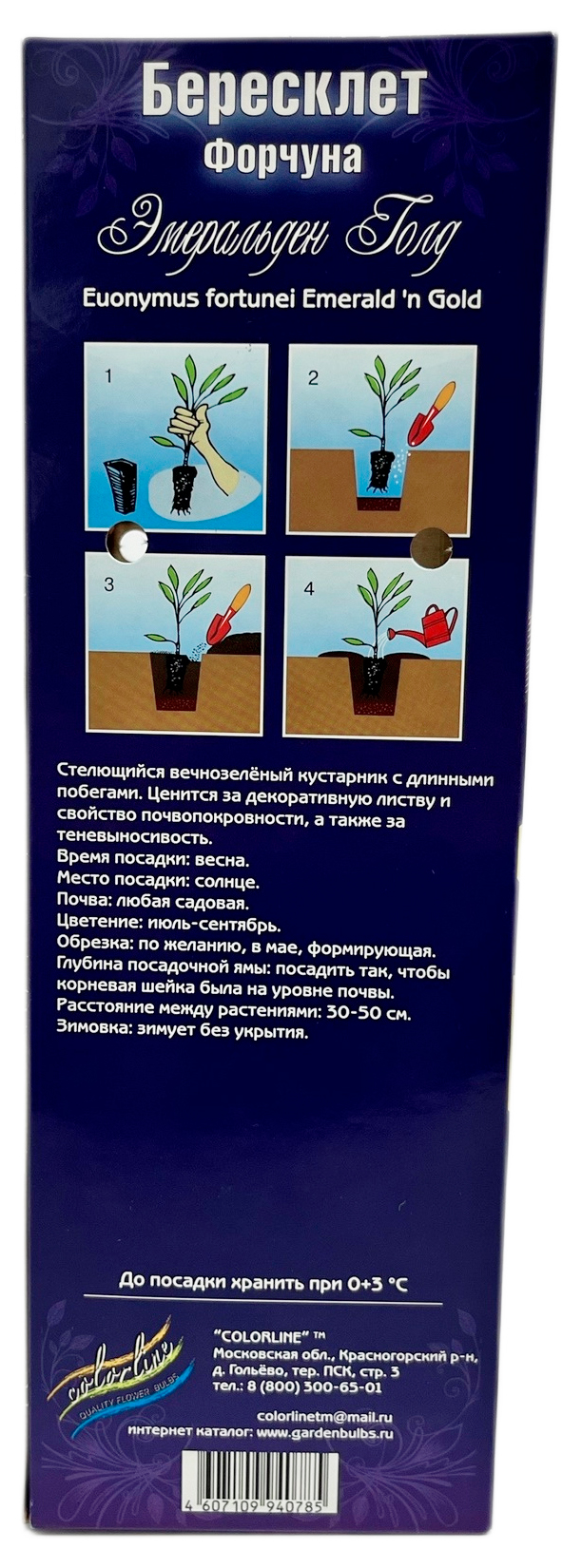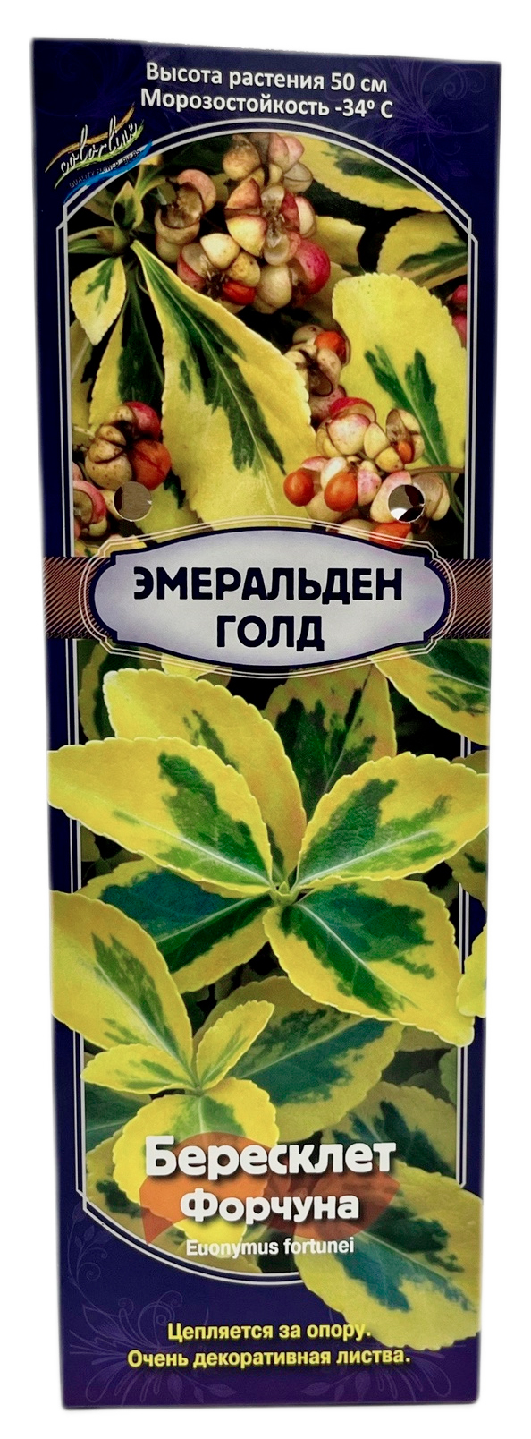 Бересклет Форчуна Эмеральд ГолдЦепляется за опору. Очень декоративная листва. Высота растения 50 см. Морозостойкость - 34 С.