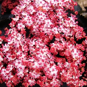 Бузина чёрная Блэк Тауэр Sambucus nigra Black Tower© Крупный быстрорастущий кустарник. Листья пурпурно-фиолетовые, резные. Цветёт в июне-июле розовыми душистыми соцветиями.Характеристики