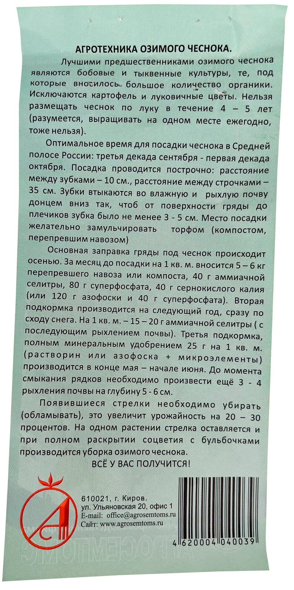 ---Чеснок головка Кировский (калибр 4-6) 3штСеменаПосадочный материалГоршки, кашпо, ящики для рассадыУкрашения и дизайн дачного участкаГрунтУдобрения, стимуляторыЯдохимикаты (пестициды)От комаров тараканов муравьев мышей крыс кротовИнструмент, оборудование садовоеТовары для животныхКухня садоводаФлористические материалыЛитератураФитолампыПоливочное оборудование