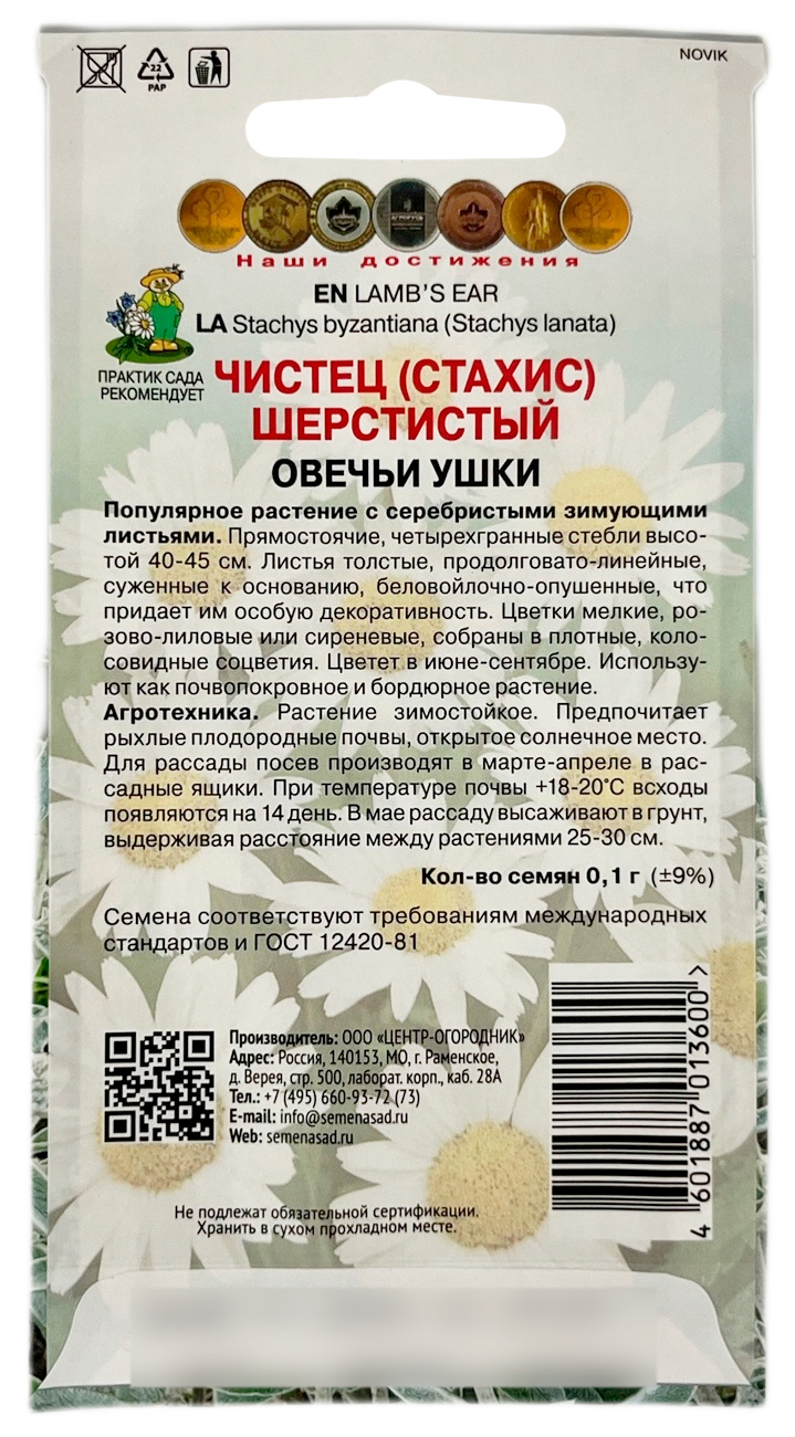 Чистец шерстистый Овечьи ушки 0,1г семена