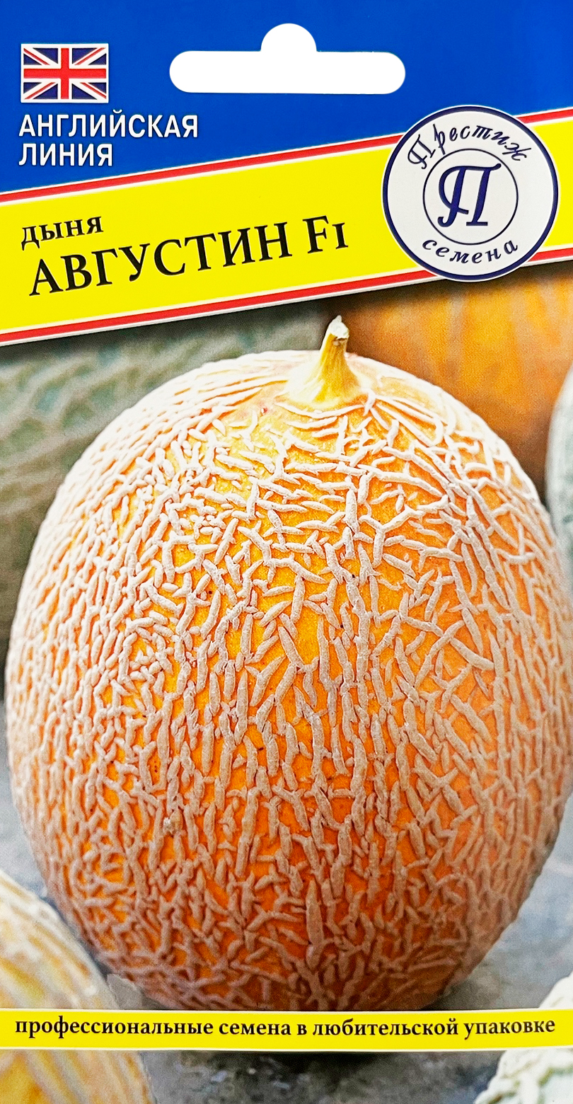 Дыня АвгустинСреднеранний гибрид с высокой жаростойкостью и устойчивостью к воздушной засухе. Плоды округлые, массой 2,5-3,0 кг, с плотной сеткой. Поверхность плода равномерно покрыта сеткой, окраска интенсивно-желтая. Мякоть толстая, нежная, сладкая, ароматная. Подходит для выращивания как в открытом, так и защищенном грунте. Период созревания 75-92 дня. Гибрид устойчив к фузариозному увяданию и мучнистой росе. Гибрид Августин F1 обладает высокой адаптационной способность и стрессоустойчивостью. На высоком уровне агротехники и с применением капельного полива на растении формируется до 4-6 плодов. Плоды хорошо транспортируются и долго сохраняют свои потребительские качества. Подходит для выращивания в открытом и защищенном грунте.