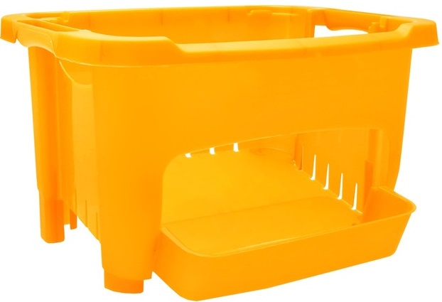 Размеры корзины составляют 39 х 32 х 23 см. При разработке корпуса используется полипропилен, который долгие годы выглядит презентабельно и не теряет прочной формы. На поверхности разработаны отверстия, чтобы кислород легко попадал внутрь. Она легко вытирается от пыли и других загрязнений.