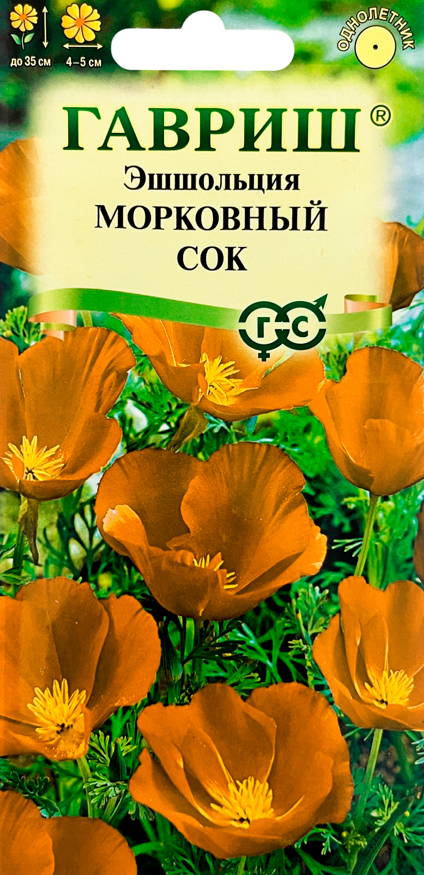 Эшшольция Морковный сок ГАВРИШНеприхотливое привлекательное растение из семейства Маковые высотой до 35 см, с серебристо-зелеными ажурными листьями и оранжевыми цветками (4-5 см в диаметре) на тонких цветоносах. Цветение обильное, начинается в первой половине июля и продолжается до заморозков. Светолюбива, засухоустойчива, холодостойка. Предпочитает сухие солнечные места, не переносит избытка влаги. Выращивают прямым посевом в грунт в конце апреля - начале мая или в октябре. Всходы появляются через 10-14 дней, их прореживают на расстоянии 20 см. Используется для посадки на клумбах, в рабатках, бордюрах и группах, а также в контейнеры и вазы.