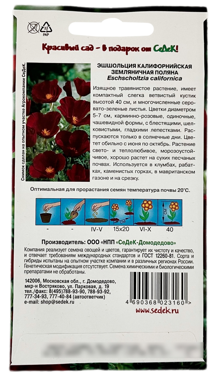 Эшшольция Земляничная поляна (калифорнийская, вишн.-красная) (Евро 0,2) семена