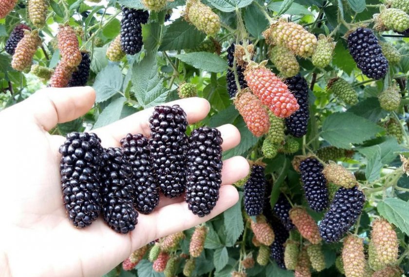 Средняя длина плодов – 4-5 см, вес – около 10 г. Примечательно, что на молодых кустиках ягоды мельче, чем у взрослых растений. После четвертого года ежевика массой около 14 г и более – не редкость. Отдельные ягоды могут набрать вес в 17 г.