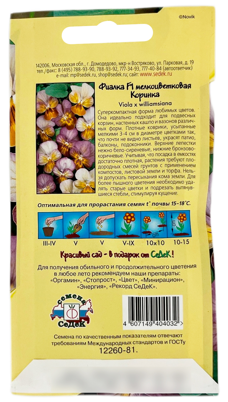 Фиалка F1 мелкоцветковая КОРИНКА СеДеКСуперкомпактная форма любимых цветов. Она идеально подходит для подвесных корзин, настенных кашпо и вазонов различных форм. Плотные коврики, усыпанные мелкими 3-4 см в диаметре цветками так, что почти не видно листьев, украсят патио, балконы, подоконники. Верхние лепестки нежно бело-сиреневые, нижние бронзово-коричневые.