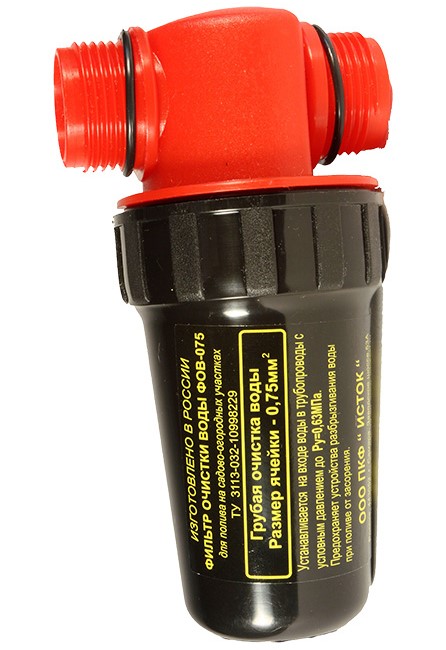 Фильтр очистки воды ФОВ-500 - предохраняет устройства разбрызгивания воды при поливе от засорения. Устанавливается на входе воды в трубопроводы с условным давлением Py= 0,63 МПа (6,3 кгс/см2).Характеристики