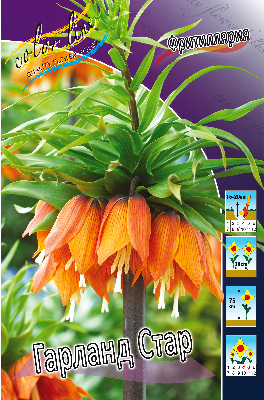 Фритиллярия Гарланд Стар многолетник, относится к группе осенних луковичных цветов. Цветок оранжевый с темно-оранжевым, листья у этого растения сочно-зеленые. Высота растения достигает до 75 см. Период цветения длится до 3 недель, затем фритиллярия переходят в стадию покоя. Размножение этих растений происходит при помощи их луковок-деток или семян. Фритиллярия - просто создана для того, чтобы ее высаживали рядом с деревьями, раскидистыми кустарниками или небольшими клумбами, необычное и манящее растение, которое украсит любой цветник. Фритиллярия не требовательна к почве и уходу, но если вы подарите растению заботу, оно вас отблагодарит во сто крат. Используется это растение в основном для озеленения, а также как горшечное растение для балконов и лоджий, для посадки на каменистых горках и в весенне-цветущих клумбах.Характеристики