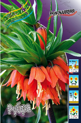 Алый.Рябчик Императорский- крупное, до 1 м, а иногда и выше луковичное растение с широколанцетными листьями.Наиболее популярный и любимый у цветоводов рябчик. Один из четырех представителей группы Петилиум (Petilium). По своей величине, красоте и размеру цветов превосходит все другие виды.Высокий, густооблиственный стебель венчает тяжелая «корона» из 6-10 крупных колокольчатых цветков, с пышным пучком листьев на макушке. Цветёт в апреле.