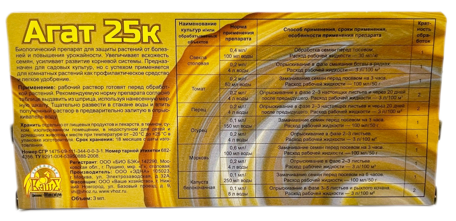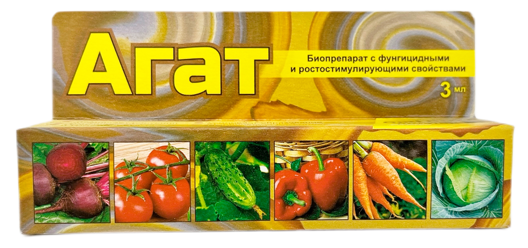 Агат, биопрепарат с фунгицидными и ростостимулирующими свойствамиБиологический препарат для защиты растений от болезней и повышения урожайности. Увеличивает всхожесть семян, усиливает развитие корневой системы.