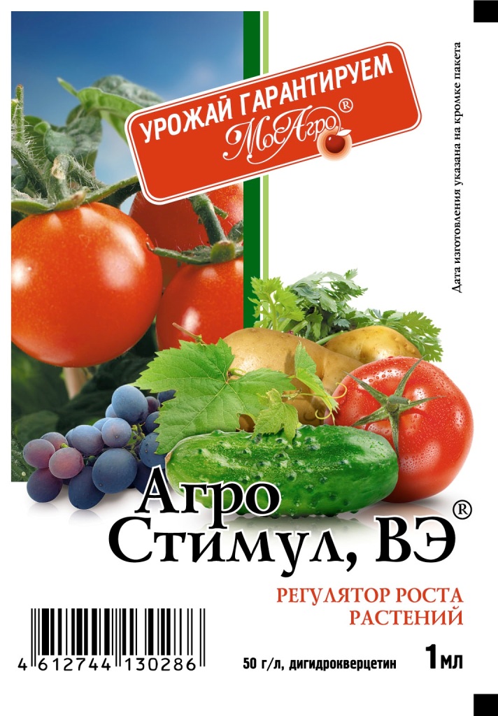 «АгроСтимул» — для усиления ростовых процессовУпаковка: пластиковая ампула 1 мл в пакете.